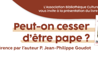 Présentation du livre du Père Jean-Philippe Goudot: « Peut-on cesser d’être Pape? » La renonciation de Benoît XVI le 11 février 2013 a eu un retentissement mondial. Le Père Jean-Philippe Goudot, historien […]