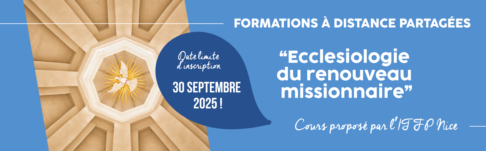 Pour davantage d’informations, rdv sur le lien https://itfp.fr/ecclesiologie-du-renouveau-missionnaire-2025-2026/